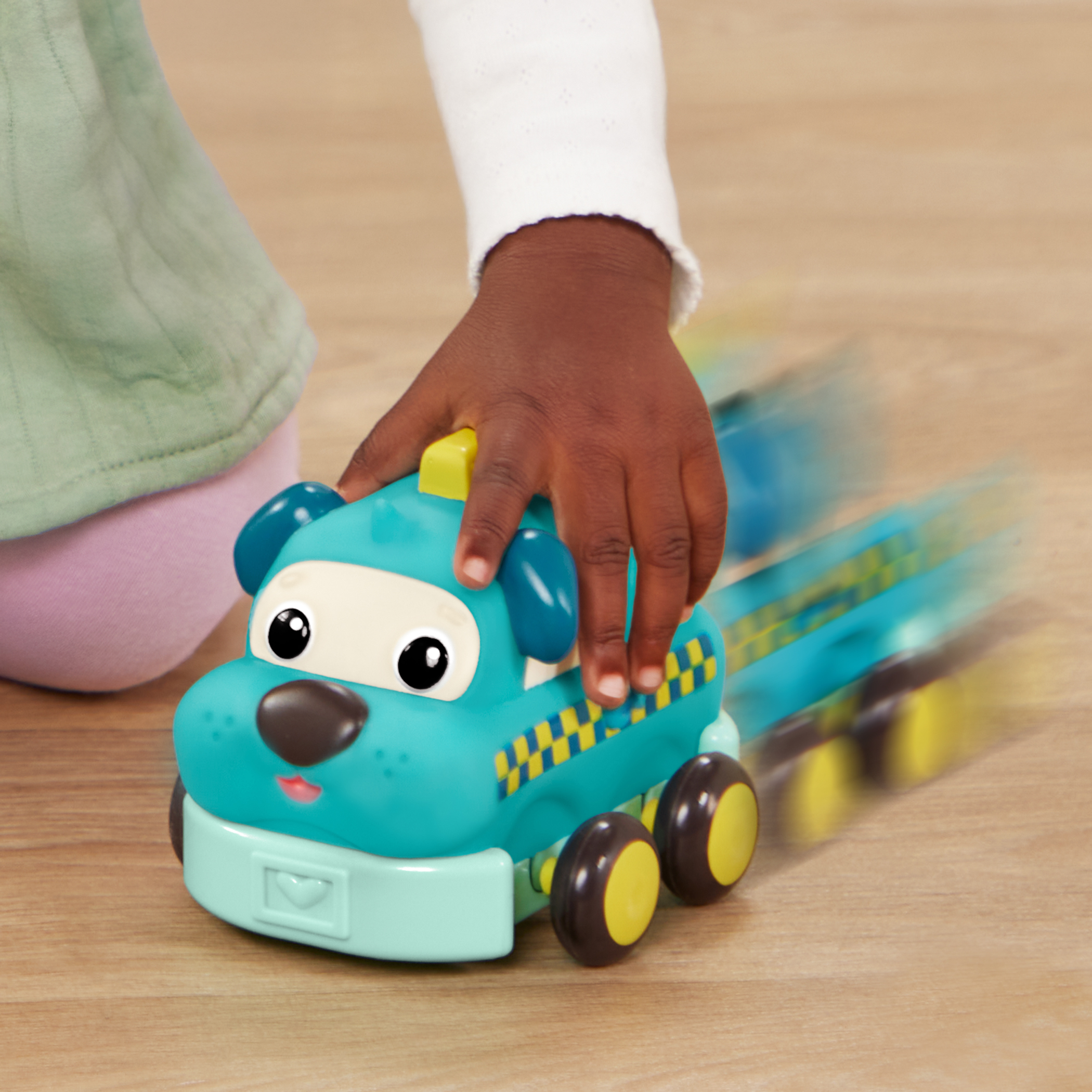 Roll into playtime alongside a gaggle of animal pals with Wheel-y Squad from B. toys! These smiley pull-back toy cars come in a pack of four that includes a race car, school bus, fire truck, and taxi. But that’s not all… These toy cars for kids are also adorable animal friends in vehicle form! There’s a fox, cat, dog, and tiger for little animal lovers to choose from. Once kiddos have their squad, it’s time to race! Little ones can easily pull these tiny hands-friendly toy cars back and release them to watch them zoom around, no batteries required! These classic toys are also great for developing a child’s hand-eye coordination, motor skills, and introduces cause-and-effect. Recommended for kids 12 months and over.